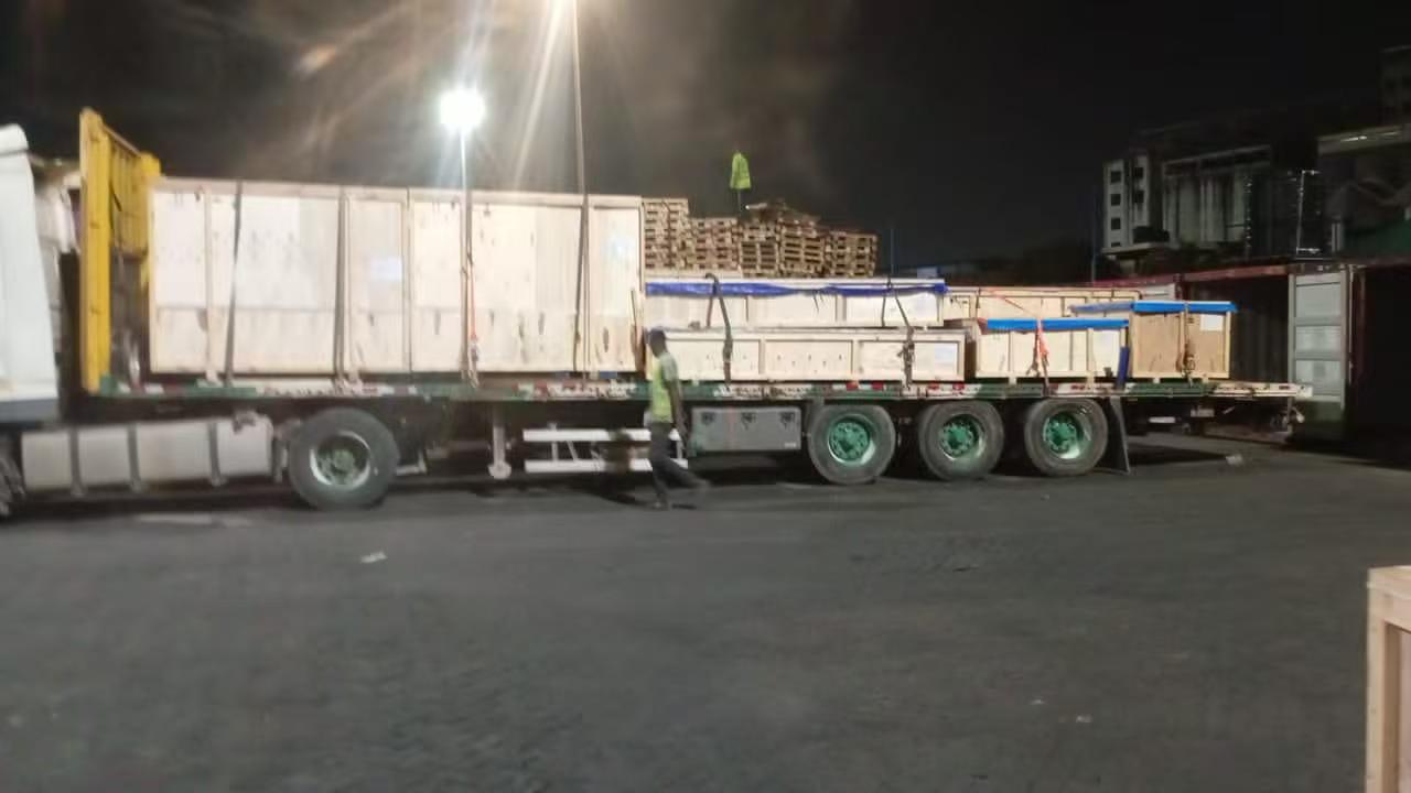 টেমা বন্দর, ঘানা, আমাদের পণ্যের আগমনের পরে পেশাদার দল অবিলম্বে প্রাপ্তি এবং পরিদর্শন সম্পন্ন করেছে। বড় শক্তির জন্য সরঞ্জাম, আমরা প্রতিরোধ করার জন্য পূর্ণ-প্রক্রিয়া ল্যাশিং এবং শক্তিবৃদ্ধি পরিচালনা করেছি স্থল পরিবহনের সময় স্থানচ্যুতি। সমস্ত পণ্য সম্পূর্ণরূপে আবৃত ছিল জলরোধী স্তরিত tarpaulins কঠোর আবহাওয়া এবং আর্দ্রতা ক্ষতি প্রতিরোধ. প্রতিটি পরিবহন যান একটি আদর্শ রসিদ ফর্ম সঙ্গে সজ্জিত ছিল সম্পূর্ণ প্রক্রিয়া ট্রেসেবিলিটি এবং যাচাইকরণ।